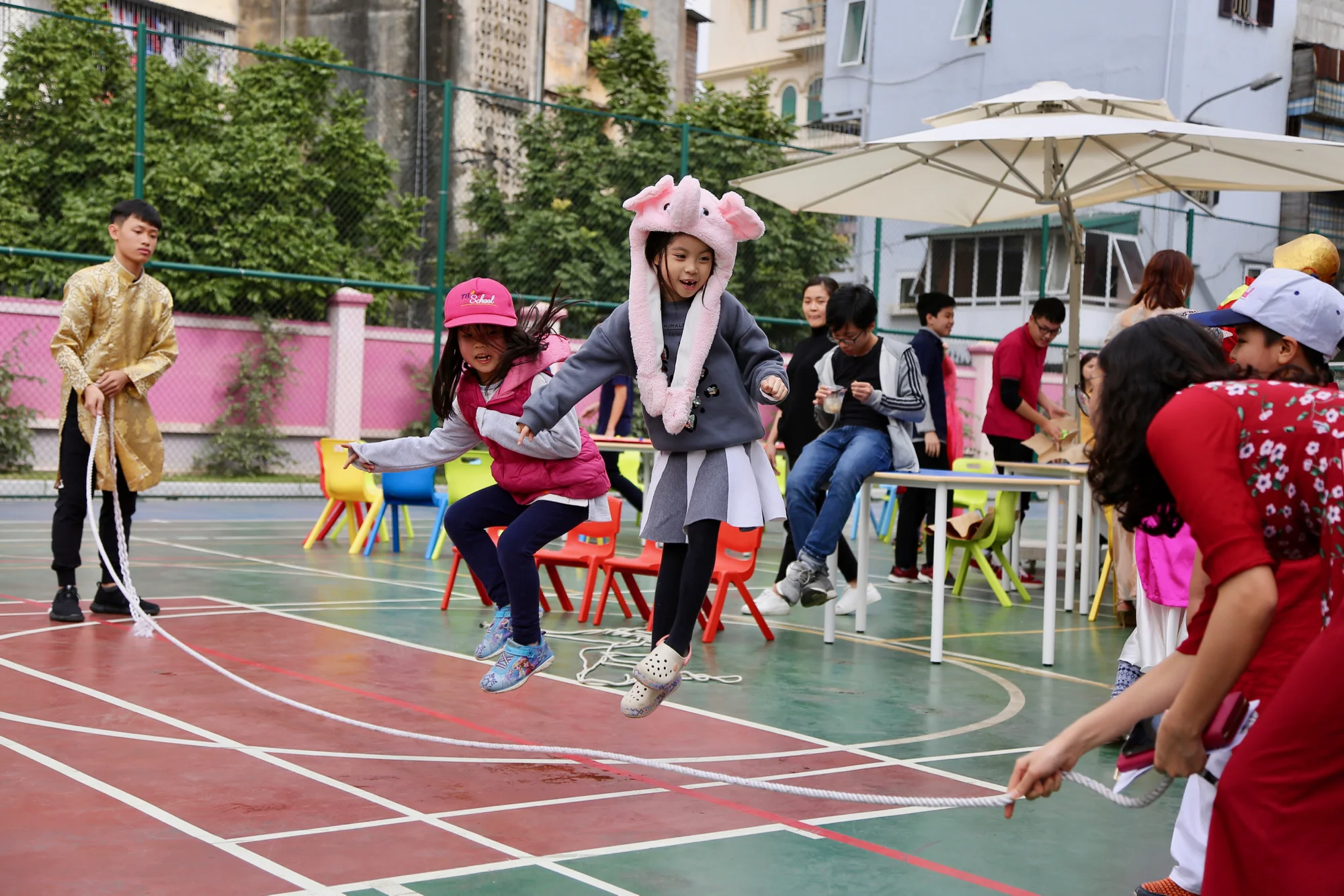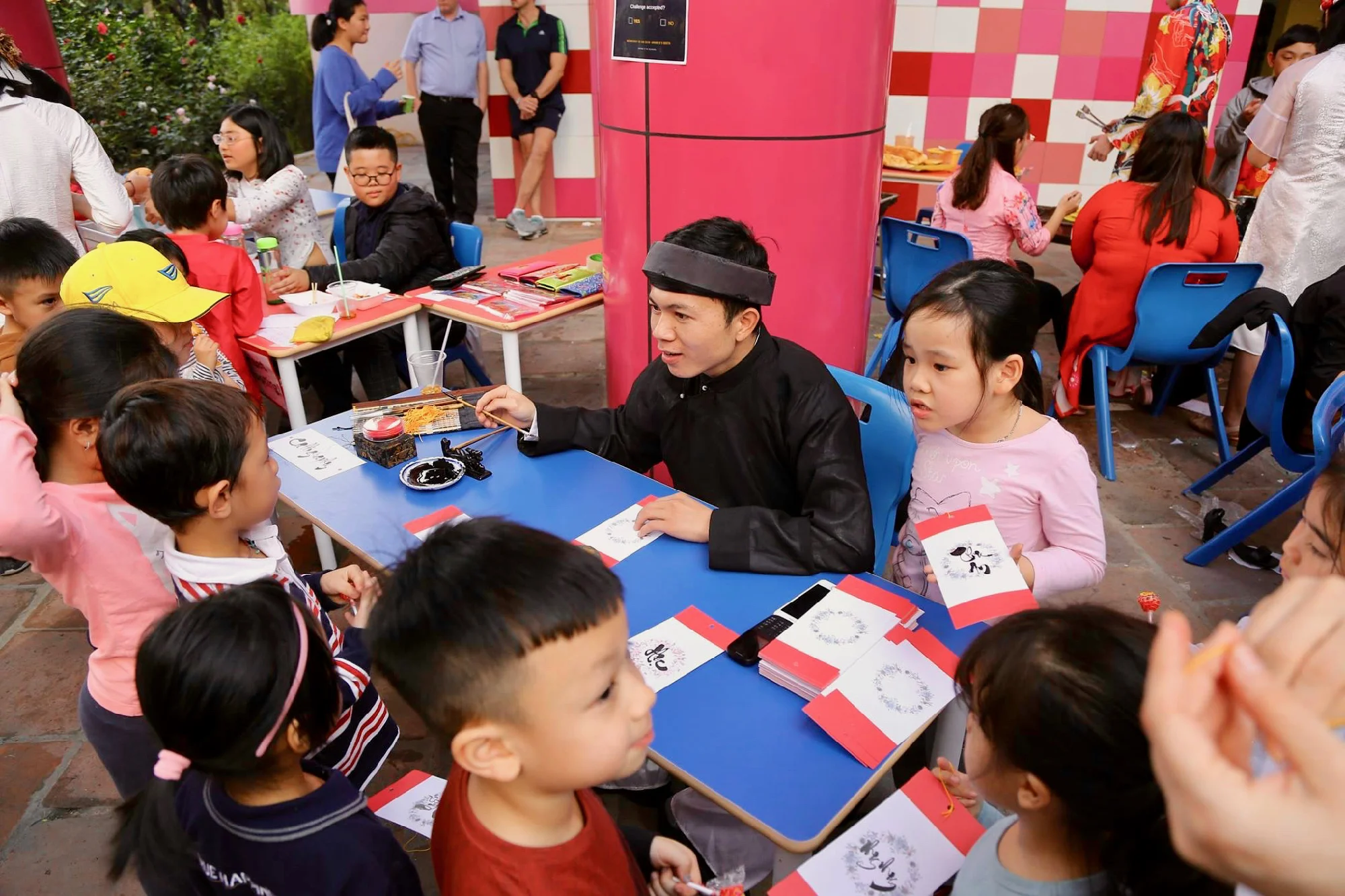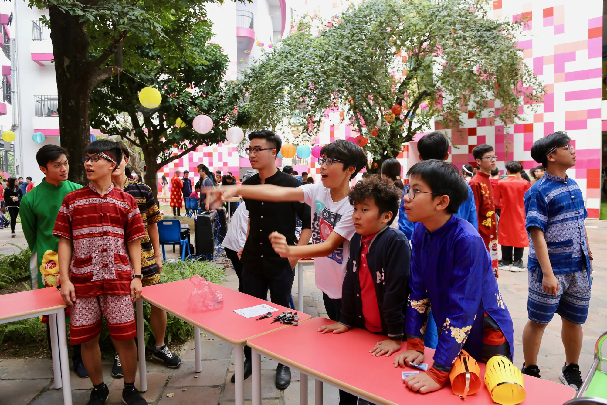 The highlight of this year’s Tết Festival was the food court, made up of many beautifully decorated booths where students served up a range of delicious foods from different regions of Vietnam. This was an opportunity for the students to demonstrate their professionalism as entrepreneurs, organizing their business through the various stages from production to sales. KG and Primary school students enjoyed many different games and activities, and they also learned from their teachers how to better manage the money prepared by their parents to spend toward goods at the festival.