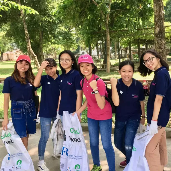 Boarding students from both campuses joined teachers and staff to participate in World Cleanup Day at Thống Nhất Park in Hanoi.